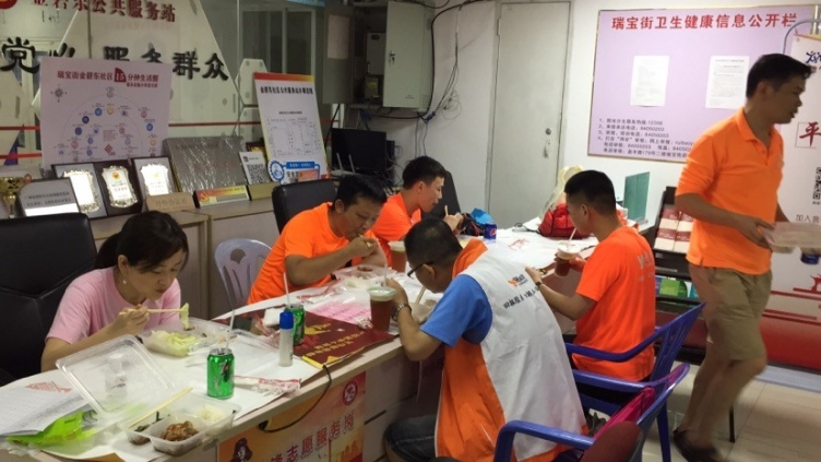 每隔一个小时,第二批党员突击队队长钟浩都会给在其他区域服务的队员致电,提醒他们一定要注意安全,照顾好自己。“我们男生不怕晒”“你们先吃,我们不饿”,在志愿工作过程中,“守护”处处可见,除了以关爱居民为己任,队员们也彼此关心、相互照顾。突击队队员莫加嘉感慨道:“烈日当空之下,6名男队员主动把有遮阳棚的检测登记岗让给我们4名女队员。”风雨骤来,淋得人猝不及防,志愿者们的衣物全部湿透了,集团迅速发挥群团工作力量,紧急调集多件干净替换衣物,即刻送达现场,令志愿者的心中倍感温暖。